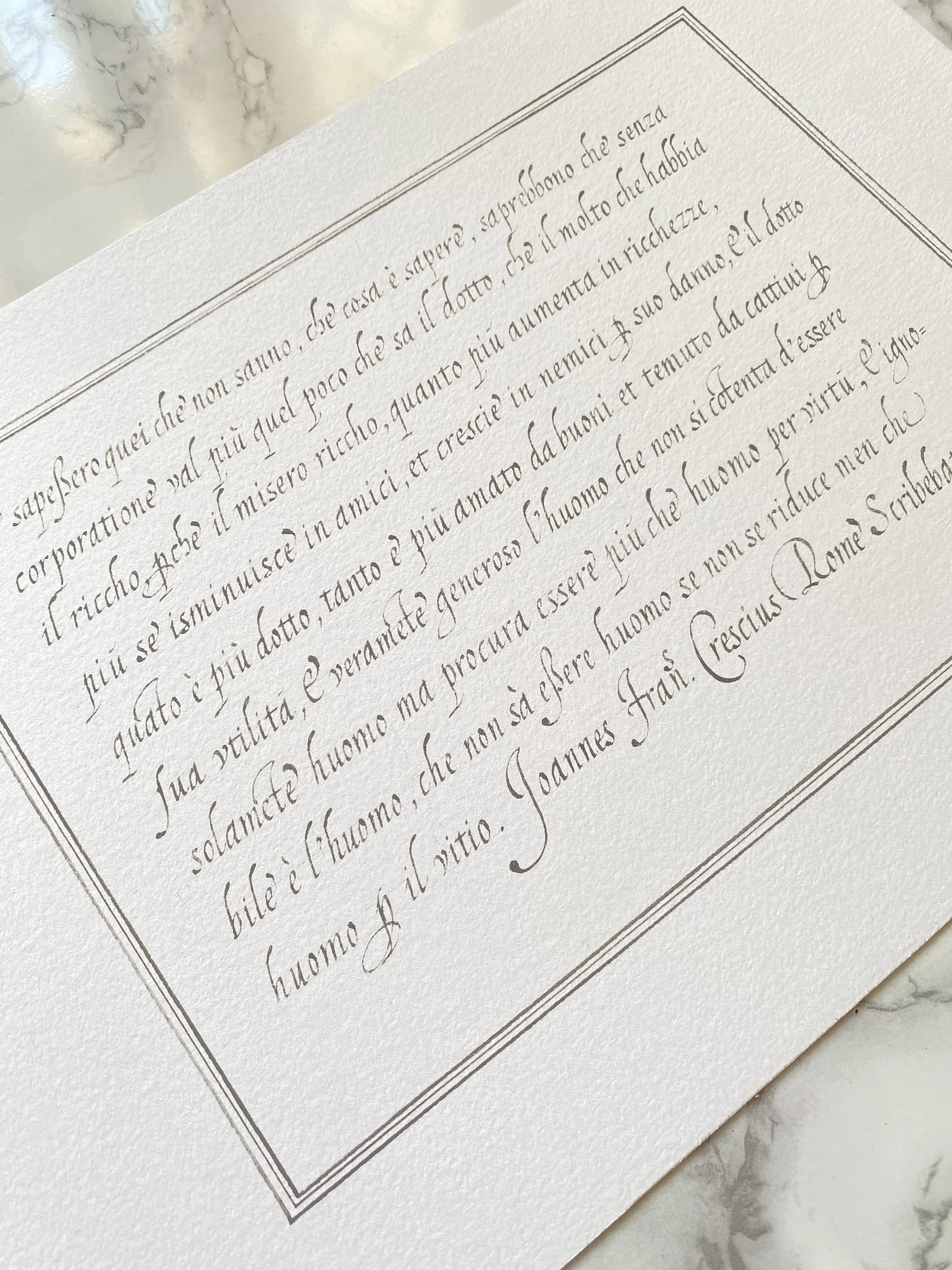 Trasmette una grande passione per la calligrafia e condivide generosamente la sua esperienza.