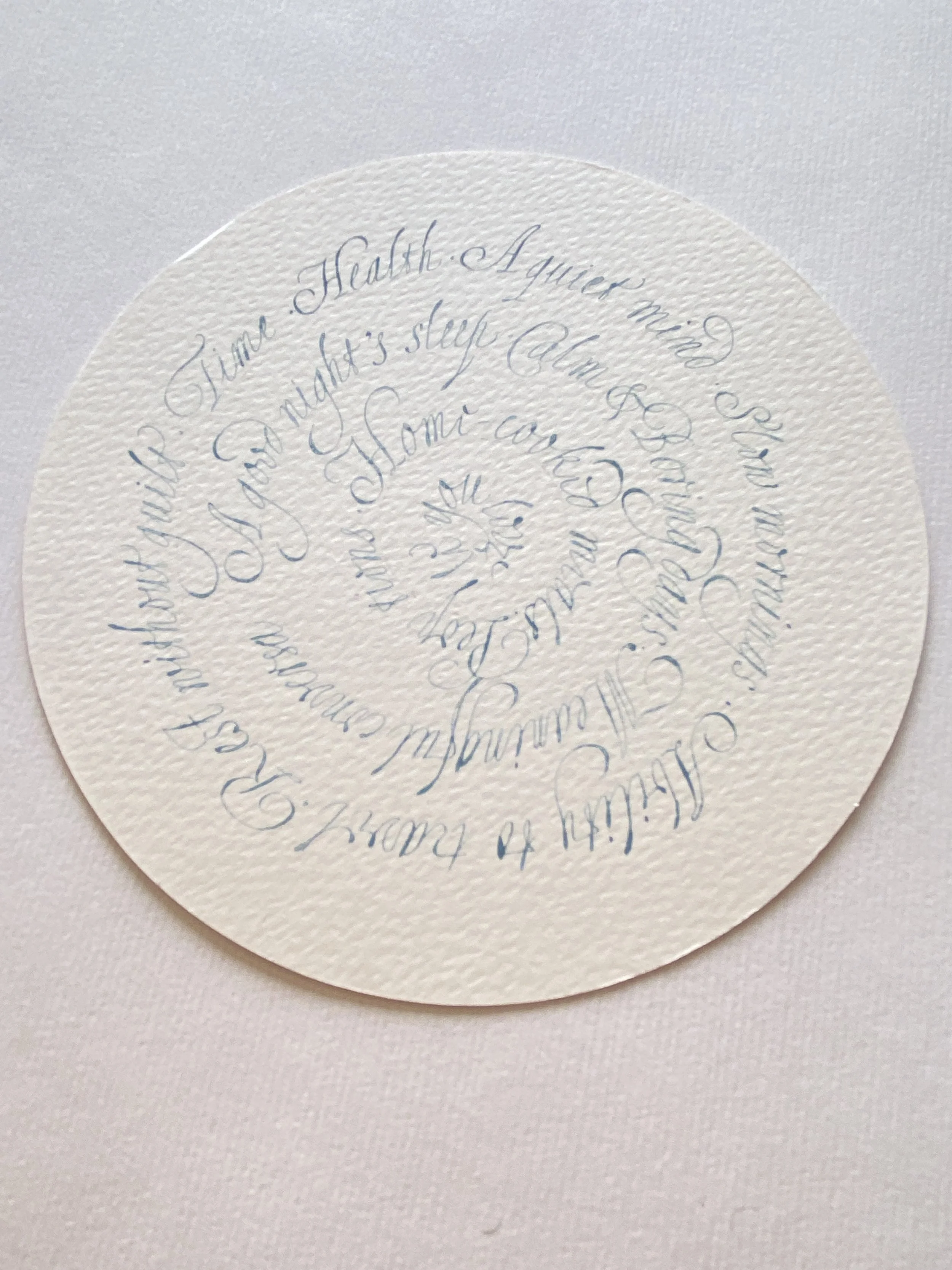 Nel 2018 ho conseguito il Certificate of Proficiency della associazione IAMPETH per lo stile Engrosser’s. Sempre nel 2018 fondato il Pointed Pen Collective con Kate W. Nel 2019, ho vinto la borsa di studio per lo Spencerian intitolata a Brian Walker e istituita dallo IAMPETH.