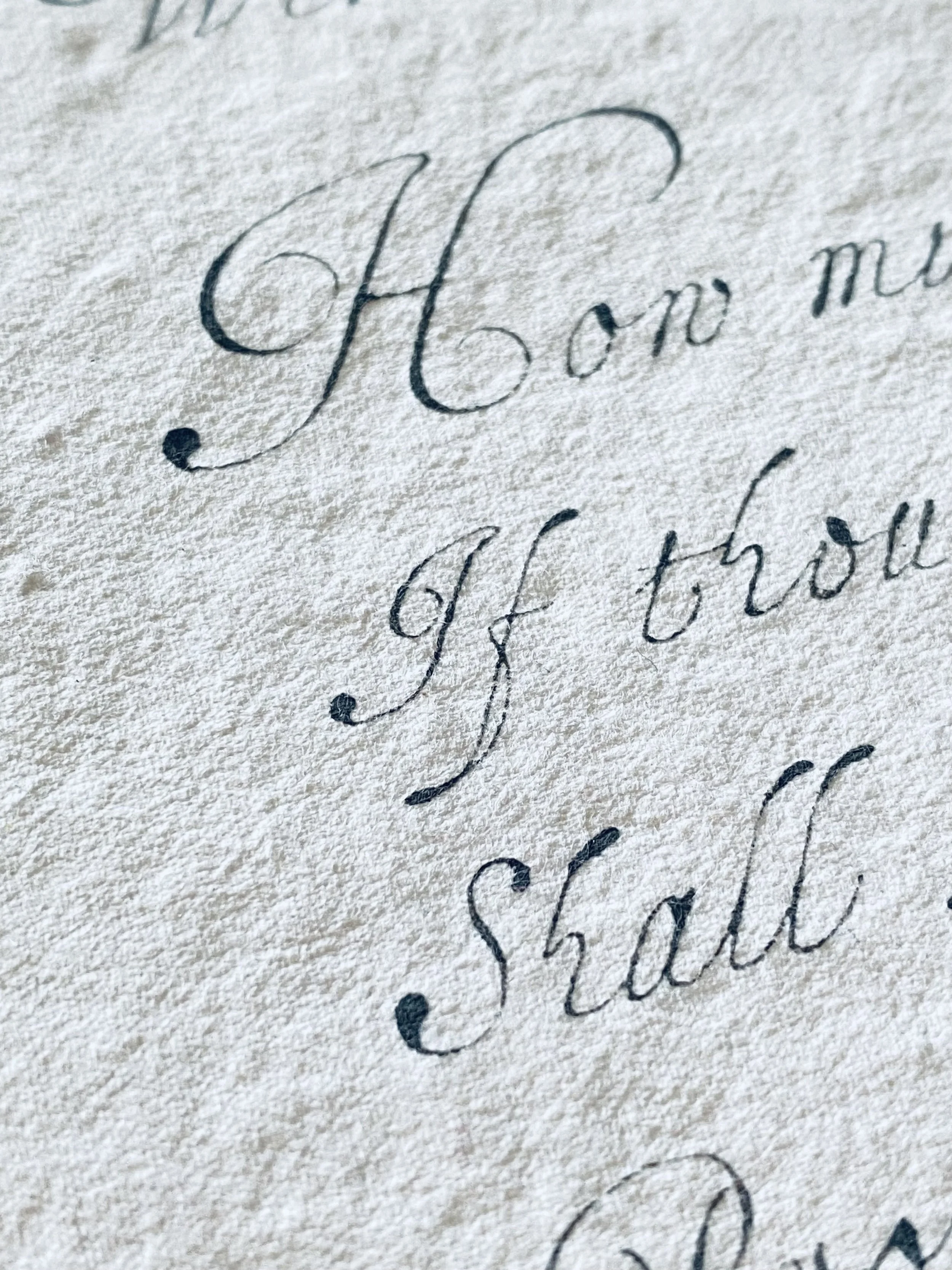 Sono sempre stata appassionata di lettere e della scrittura a mano; mi sono avvicinata allo studio della calligrafia tradizionale nel 2013, e da allora ho studiato con maestri di fama internazionale, in particolare gli stili a punta fine.